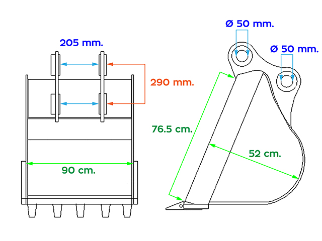 บุ้งกี๋ PC75 สำหรับรถขุด หน้ากว้าง 90 cm
