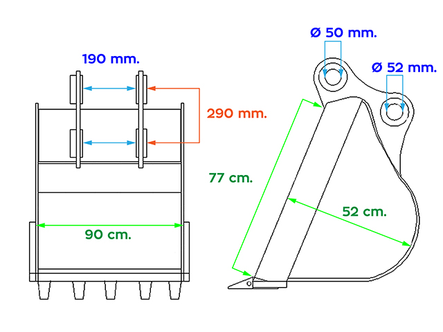 - มาพร้อมฟัน ,เหงือก และแก้ม ประกอบพร้อมใช้งาน เหมาะสำหรับงานขุดทั่วไป ขุดบ่อดิน บ่อทราย รับเหมาก่อสร้าง